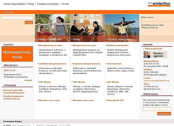 Merytoryka serwisu zaprezentowana została w estetycznej oraz czytelnej formie. Forma graficzna serwisu została wykonana w zgodzie z globalnymi standardami Winterthur.