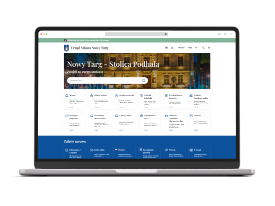 Zaprojektowaliśmy i wdrożyliśmy nowoczesny portal informacyjny, pełniący funkcję oficjalnej strony internetowej Miasta Nowy Targ. Serwis został opracowany z myślą o różnych grupach odbiorców, zapewniając intuicyjną nawigację, szybki dostęp do treści oraz pełną zgodność z wymogami prawnymi w zakresie dostępności cyfrowej.